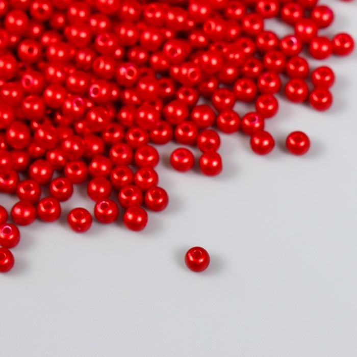 Набор бусин "Рукоделие" пластик, диаметр 4 мм, 25 гр, алый