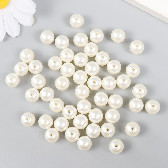 Набор бусин "Рукоделие" пластик, диаметр 10 мм, 25 гр, молочный