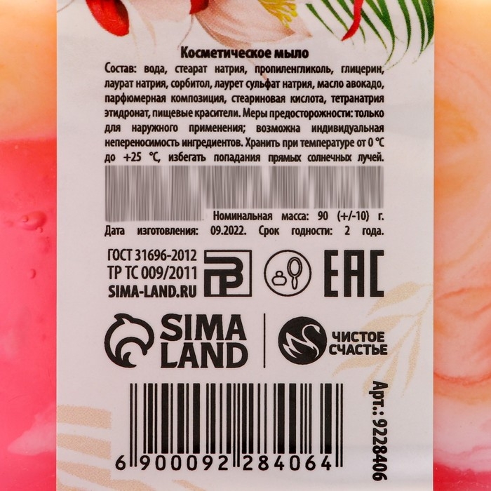 Мыло для рук «8 Марта», 90 г, аромат фруктовый, ЧИСТОЕ СЧАСТЬЕ