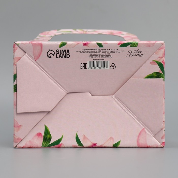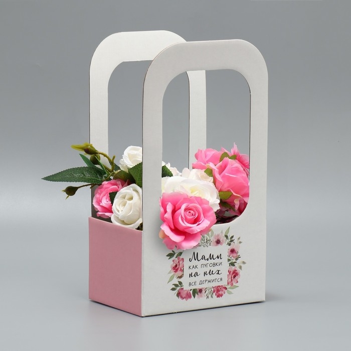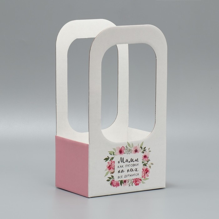Коробка-переноска для цветов «Мамы, как пуговки», 17 × 12 × 32 см