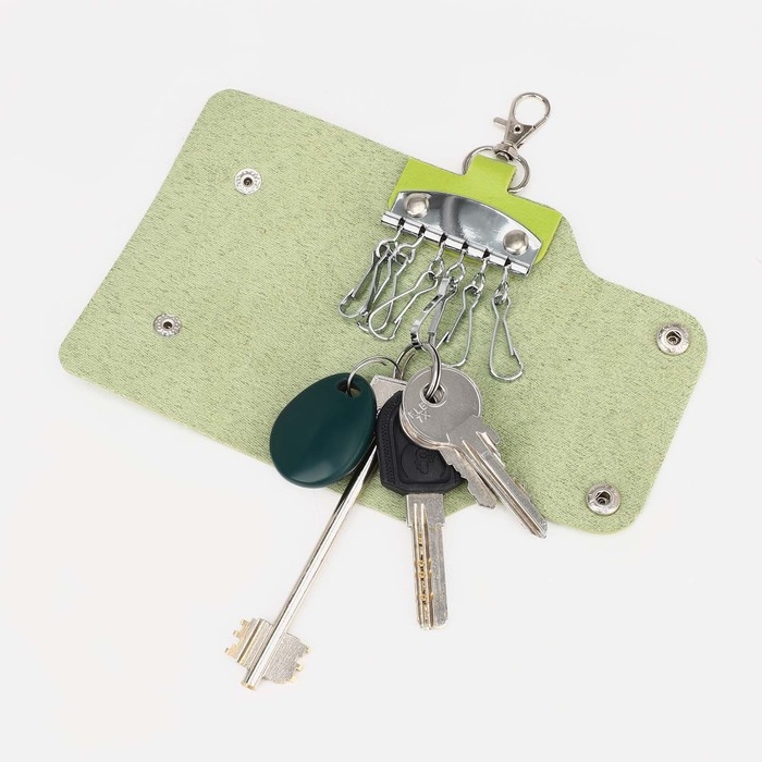 Ключница на кнопках, длина 11 см, 7 карабинов, цвет салатовый