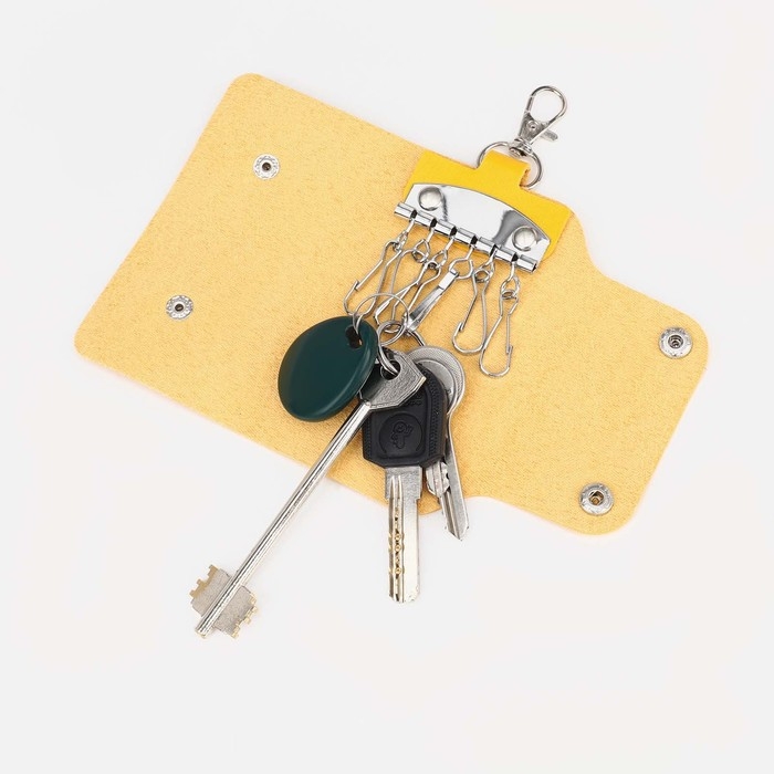 Ключница на кнопках, длина 11 см, 7 карабинов, цвет жёлтый