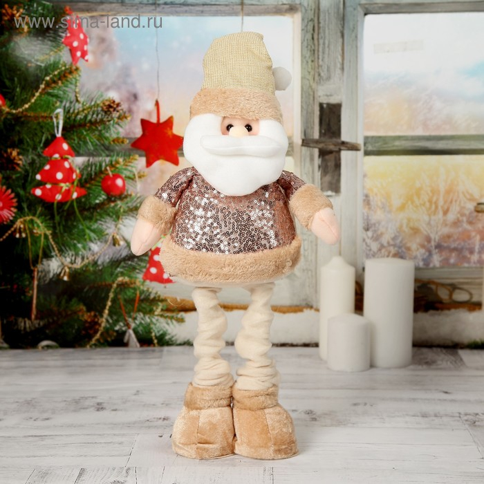 Мягкая игрушка "Дед Мороз в пайетках" стоит, 15х41 см (в сложенном виде 30 см), коричневый