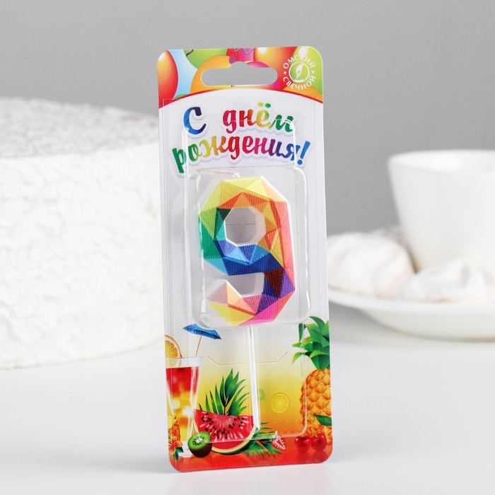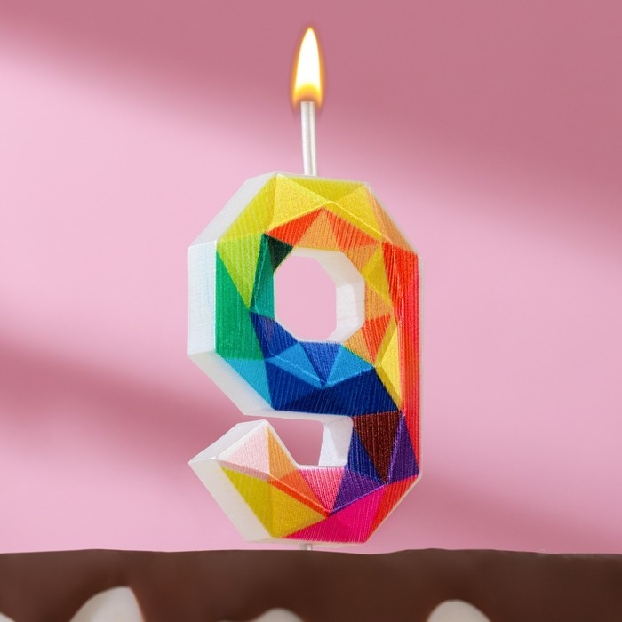 Свеча в торт на шпажке "Разноцветные грани", цифра 9, 5,3 см