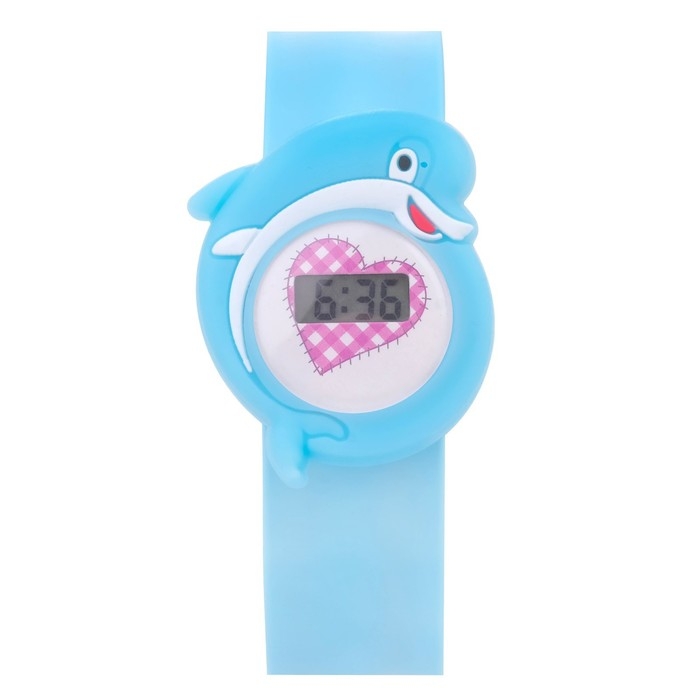 Часы наручные электронные, детские "Дельфин", ремешок силикон l-21.5 см