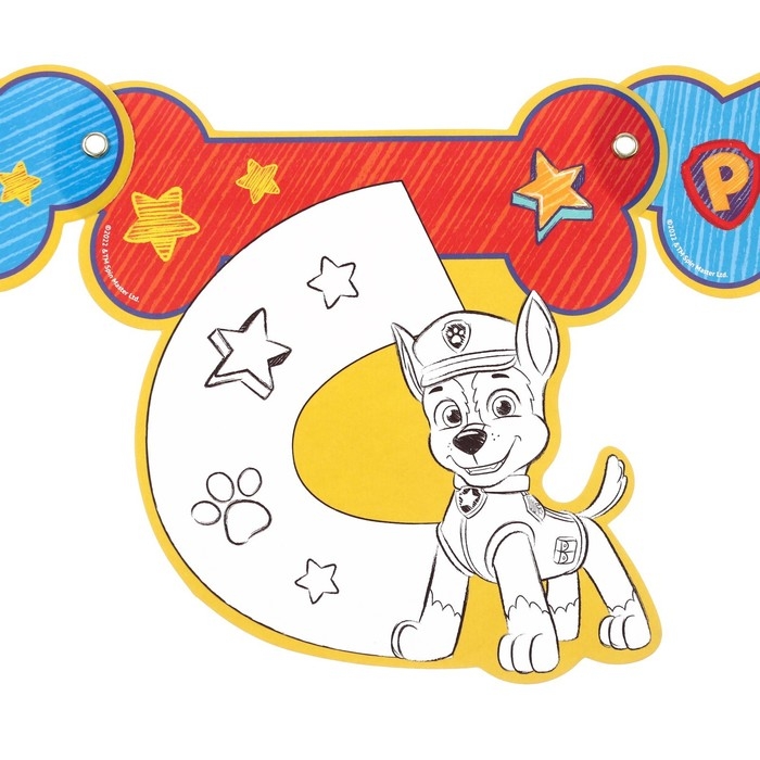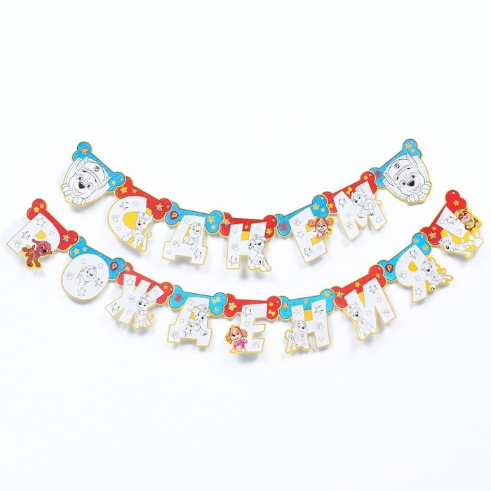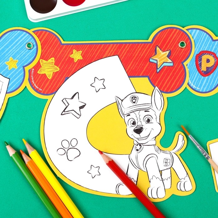 Гирлянда-раскраска на люверсах "С днем рождения!", с плакатом, длина 246 см, Щенячий патруль