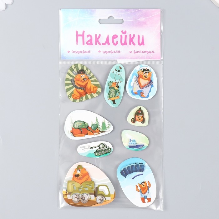 Наклейка картон 2 слоя "Медведи-защитники" 17х12 см