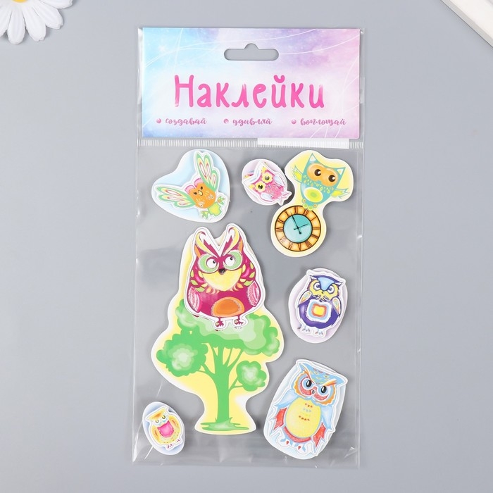 Наклейка картон 2 слоя "Филины в лесу" 17х12 см