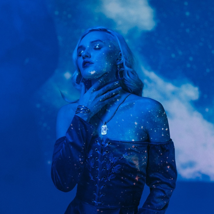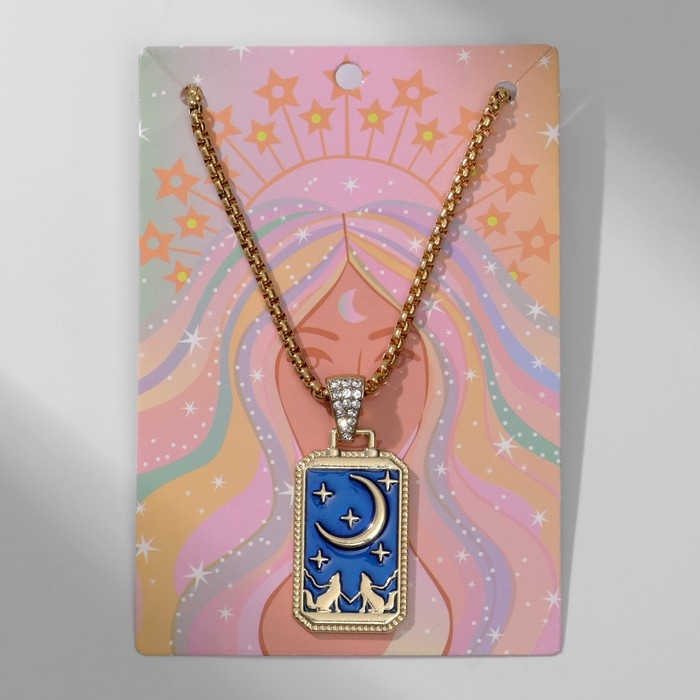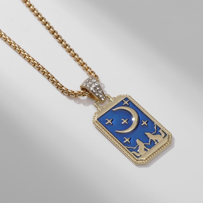 Кулон «Полумесяц» звёзды, волки, цвет синий в золоте, 60 см