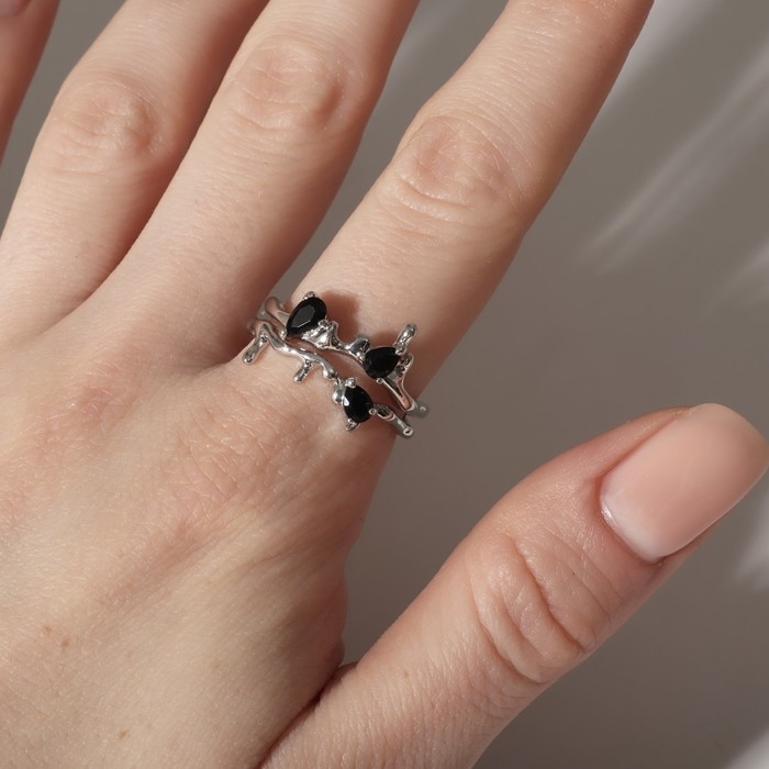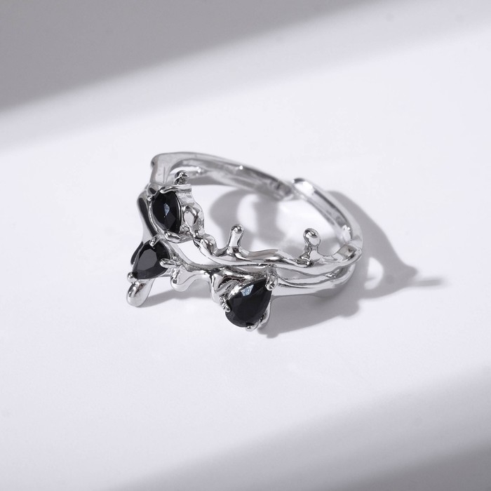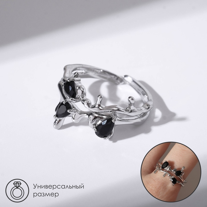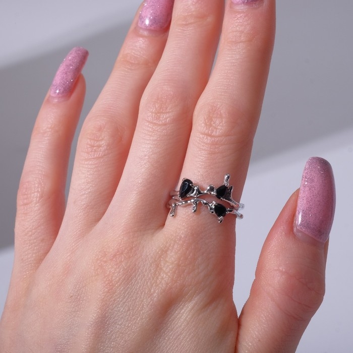 Кольцо «Чары», цвет чёрный в серебре, безразмерное