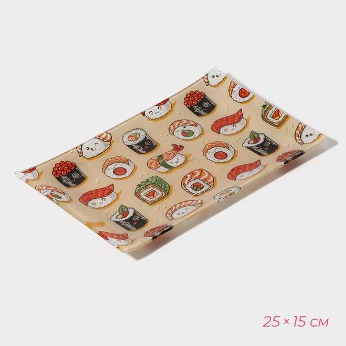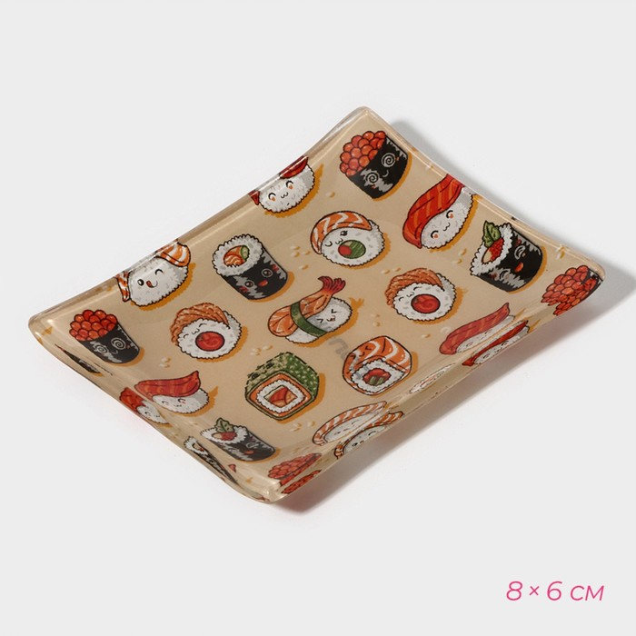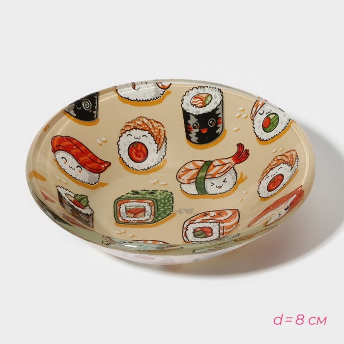 Набор для суши из стекла Доляна «Фудзияма», 3 предмета: соусники 8×2 см, 8×6 см, подставка 25×15×2 см