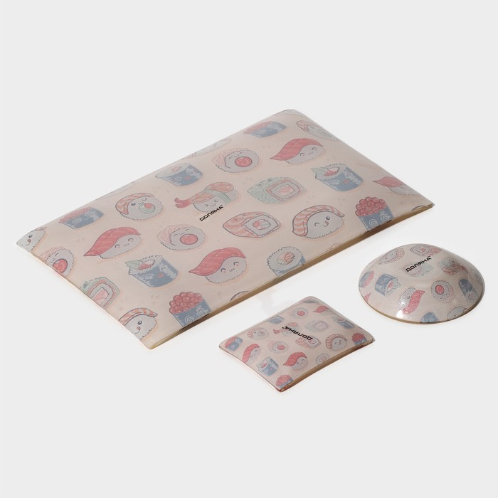 Набор для суши из стекла Доляна «Абстракция», 3 предмета: соусники 8×2 см, 8×6 см, подставка 25×15×2 см