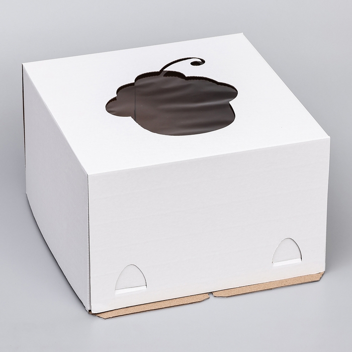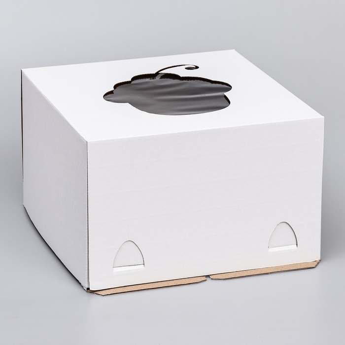 Коробка под торт с окном, "Пироженка", с усиленным дном, белая, 30 х 30 х 19 см