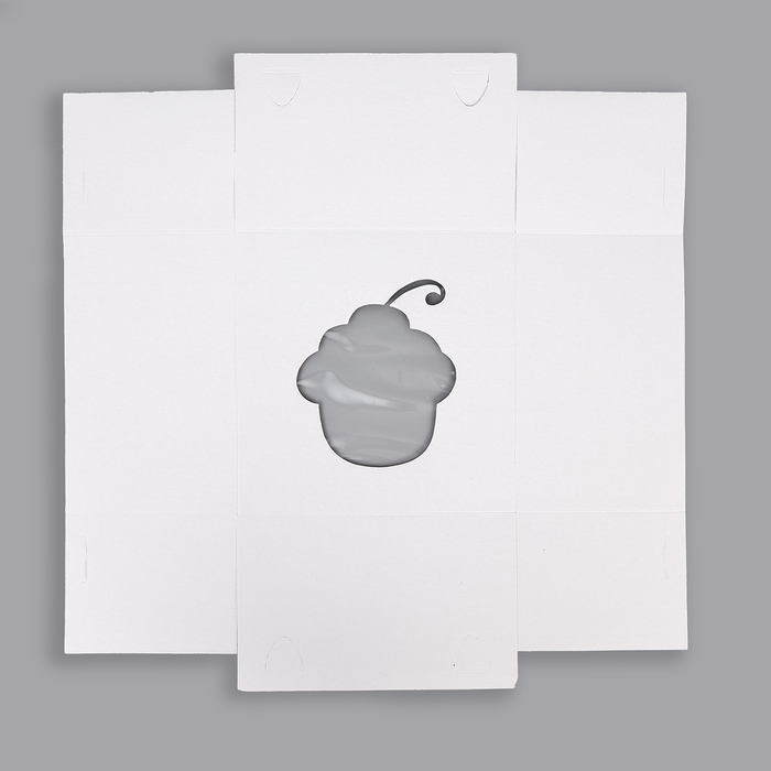 Высокая плотность картона позволяет ему не сгибаться и не деформироваться. Панорамное прозрачное окошко из пластика продемонстрирует ваш десерт.