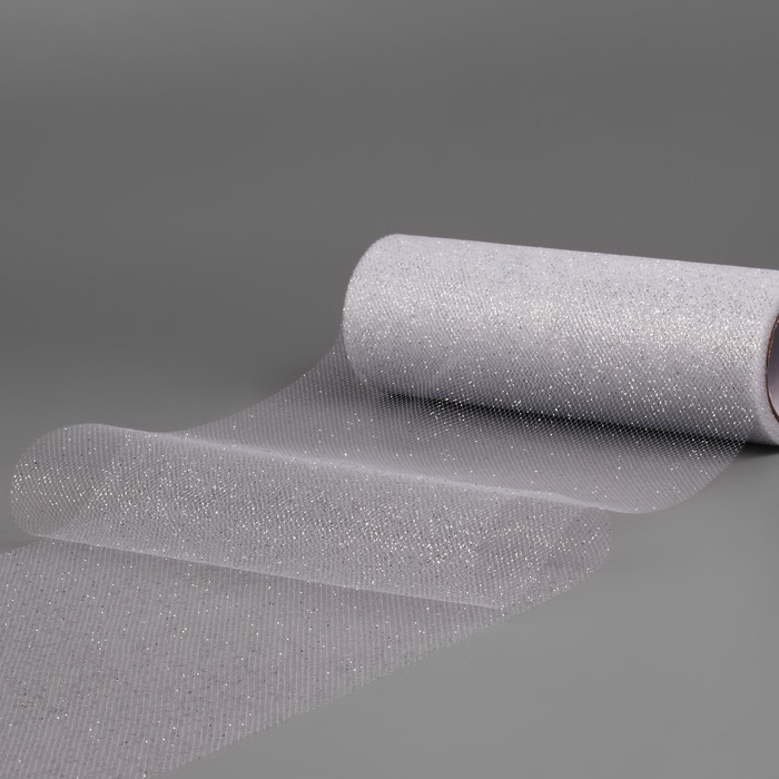 Фатин с глиттером, 15 см, 11 ± 1 г/кв.м, 9 ± 0,5 м, цвет серебряный №06