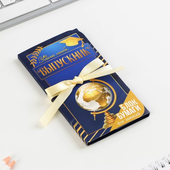 Блок бумаги для записей с липким слоем на выпускной «Выпускнику» в открытке с лентой, 30 листов