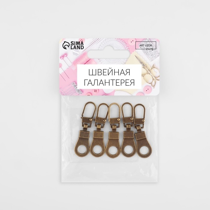 Пуллер для молнии, металлический, 4 × 1,2 см, 5 шт, цвет антик