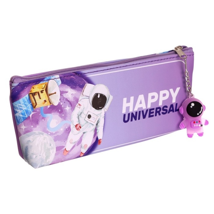 Пенал школьный на молнии, с подвеской, "Космонавт", МИКС