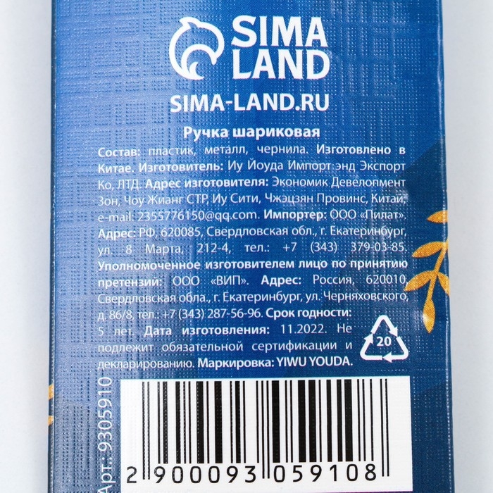 Ручка шариковая синяя паста, пластиковая со звездой "С 23 Февраля"