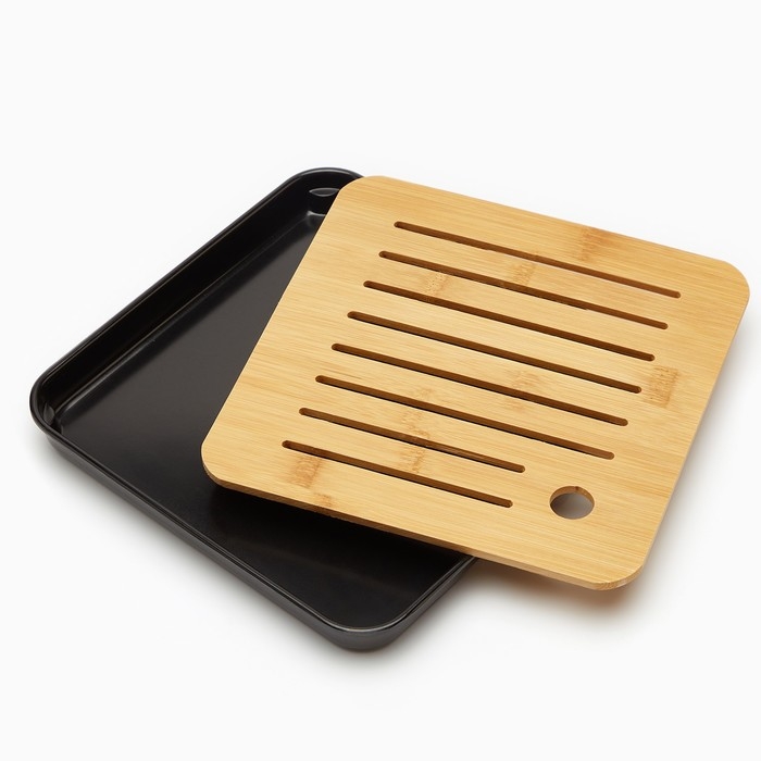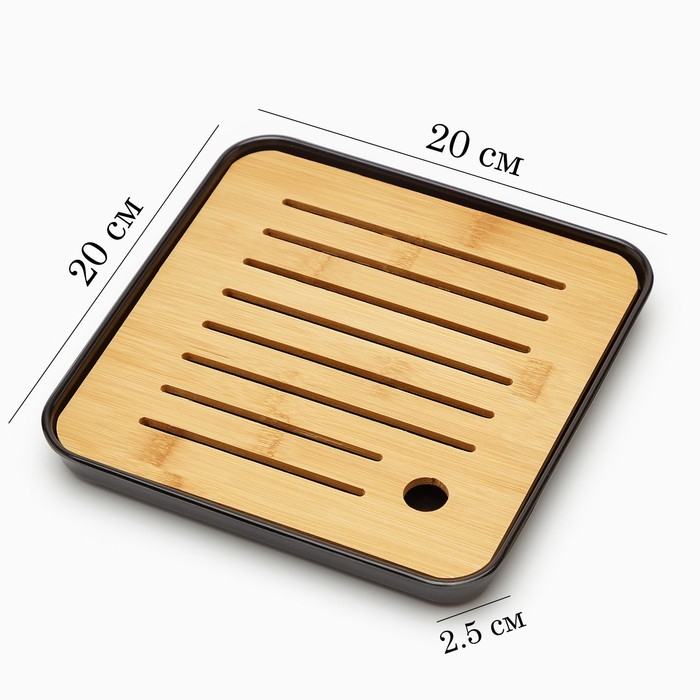 Поднос для чайной церемонии, 20 х 20 х 2.5 см, черный поддон