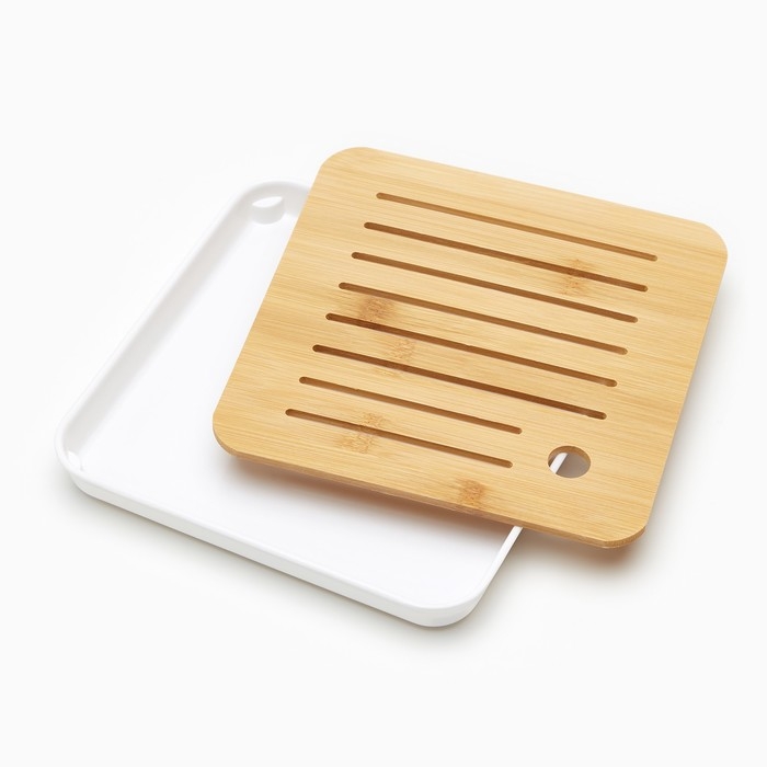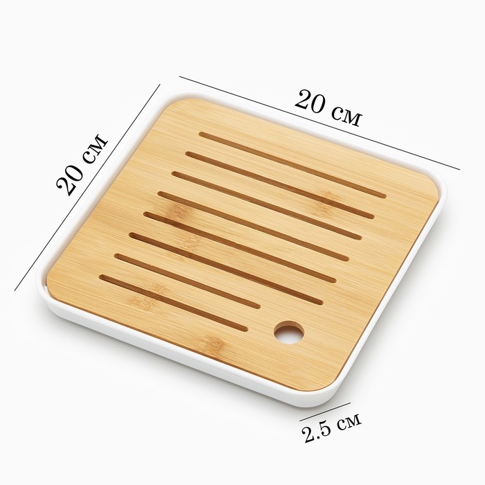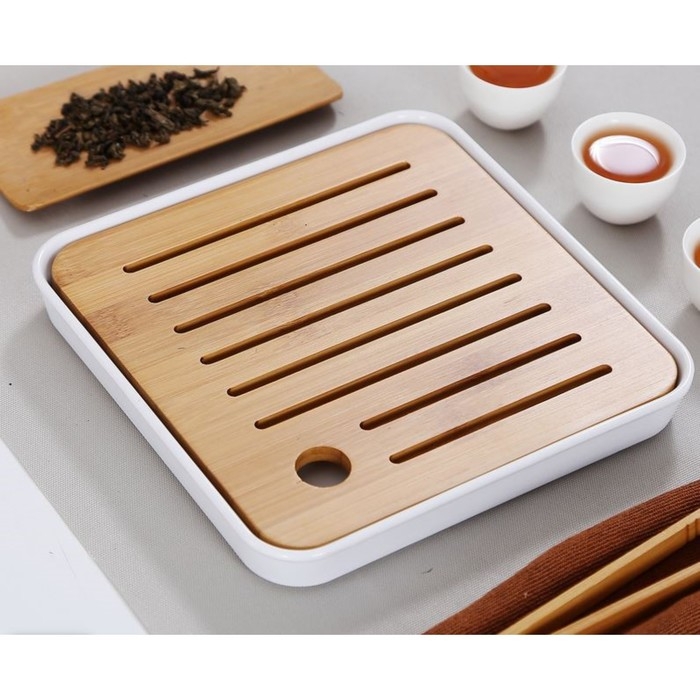 Поднос для чайной церемонии, 20 х 20 х 2.5 см, белый поддон