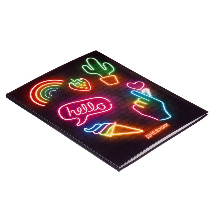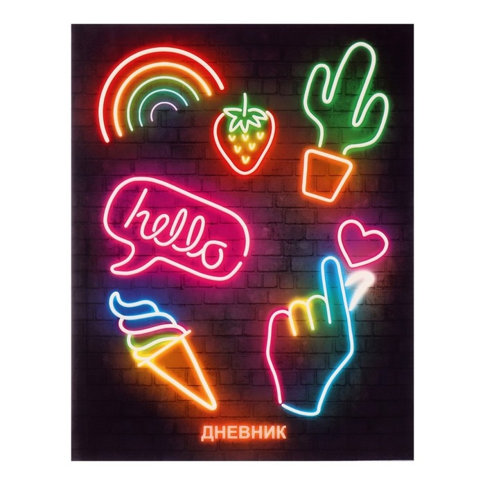 Дневник универсальный для 1-11 классов, "НЕОН вывеска Кактус ", интегральная (гибкая) обложка, глянцевая ламинация, 40 листов