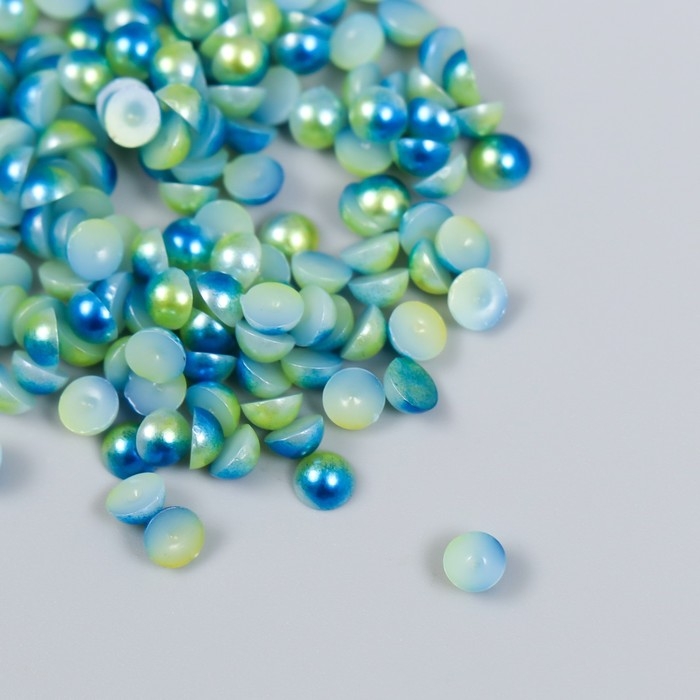 Декор "Полубусины и стразы. Градиент сине-золотой" d=4 мм 10г 200 шт 5х2,5 см МИКС