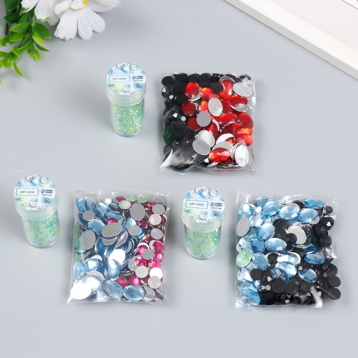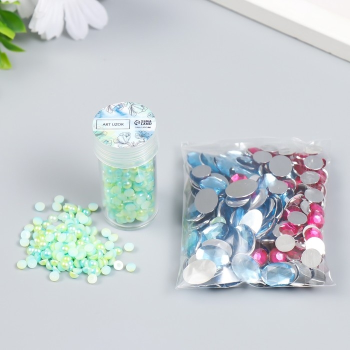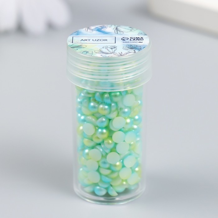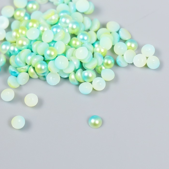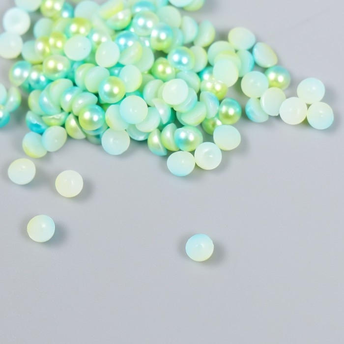 Декор "Полубусины и стразы. Градиент зелёно-голубой" d=4 мм 10г 200 шт 5х2,5 см МИКС