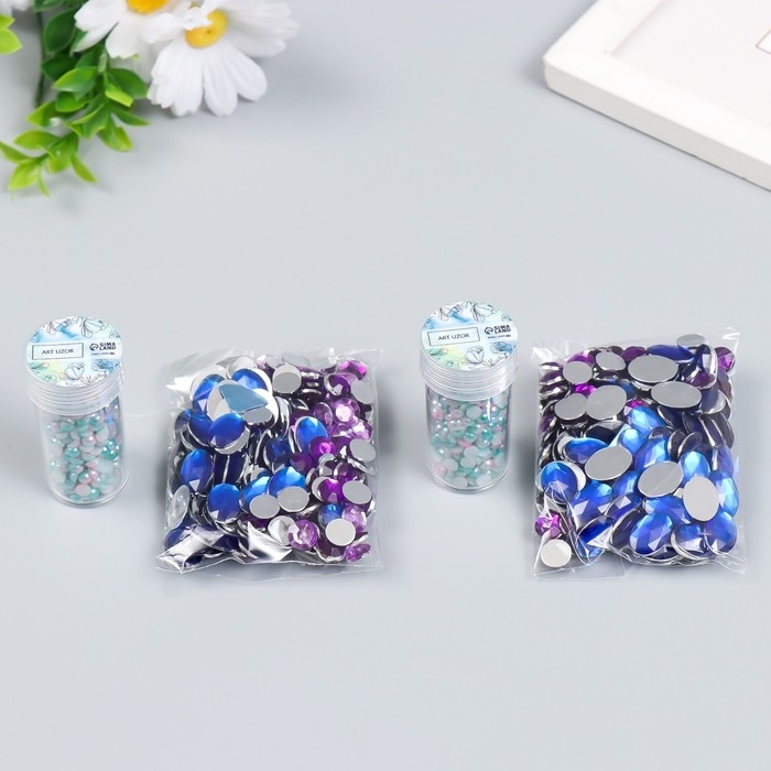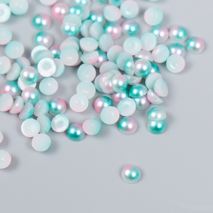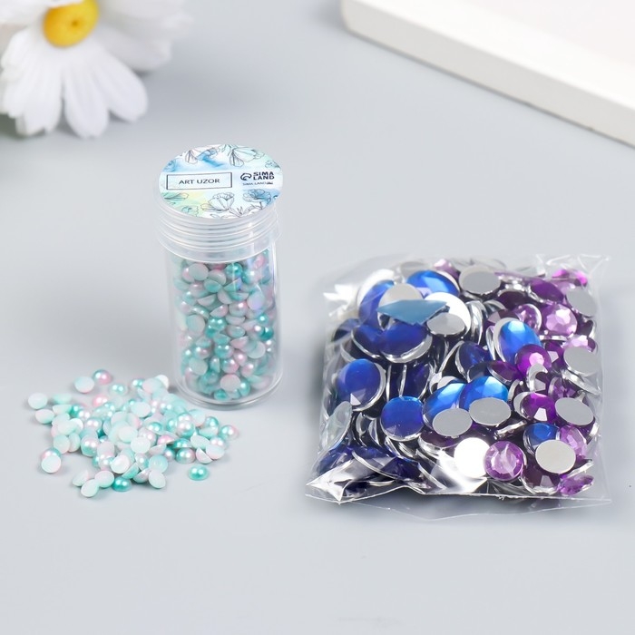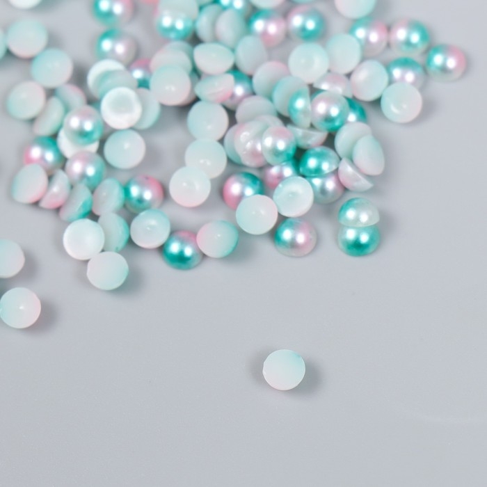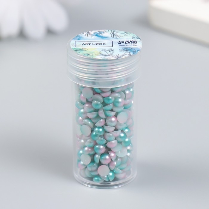 Декор "Полубусины и стразы. Градиент бело-голубой" d=4 мм 10г 200 шт 5х2,5 см МИКС