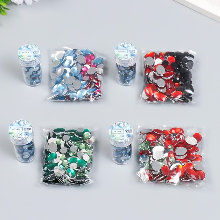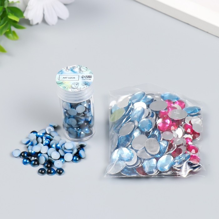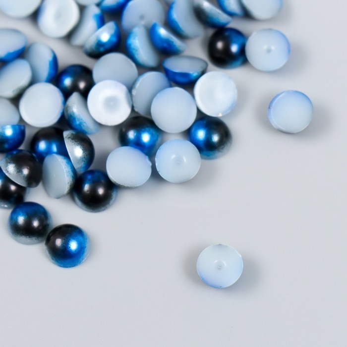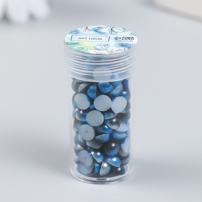 Декор "Полубусины и стразы. Градиент синий" d=6 мм 10г 200 шт 5х2,5 см МИКС