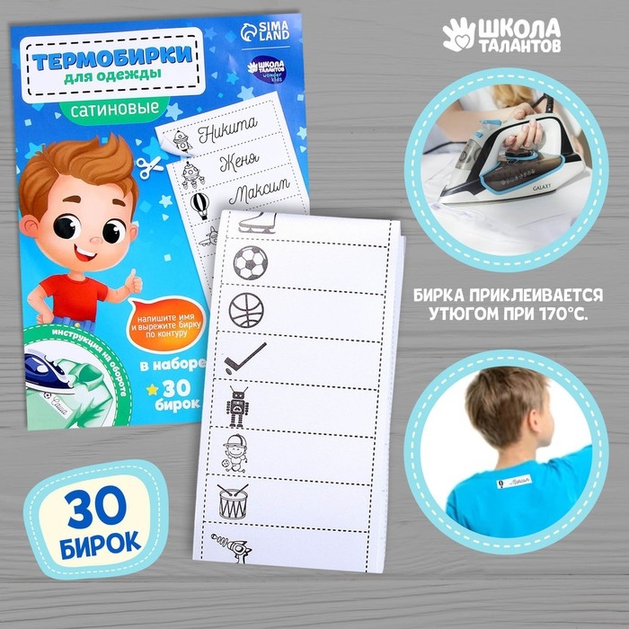 Термобирки для одежды. Набор именных термонаклеек для маркировки детских вещей «Озорной мальчик», 30 шт