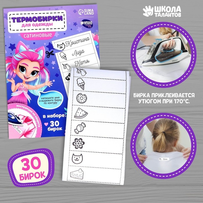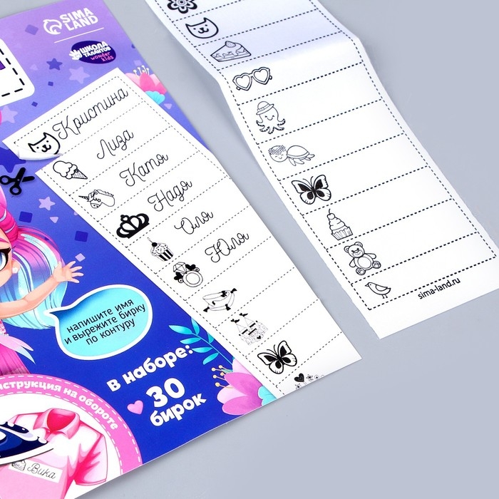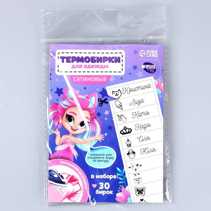 Термобирки для одежды. Набор именных термонаклеек для маркировки детских вещей «Веселая девочка», 30 шт