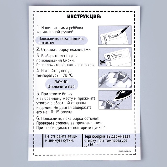 Не стирайте вещь минимум сутки после приклеивания бирки.
