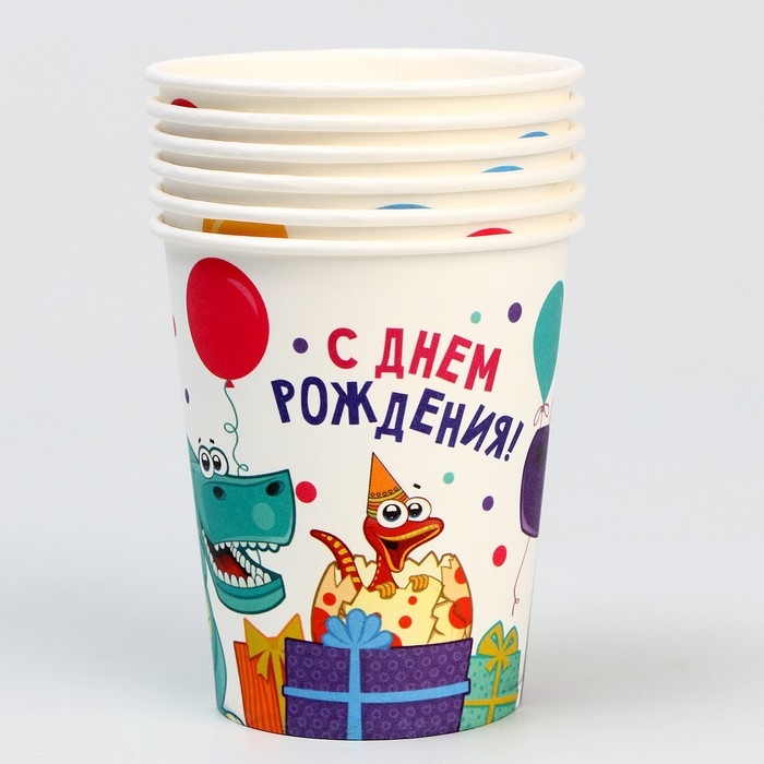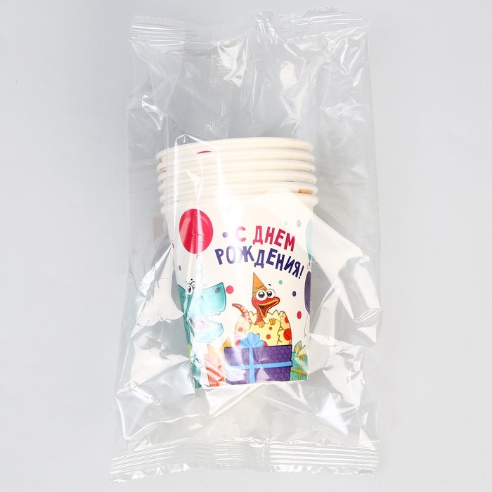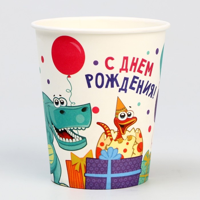 Стакан одноразовый бумажный "Динозаврики", 250 мл,набор 6 шт.