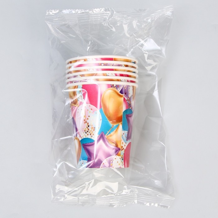 Одноразовая посуда: стакан бумажный «Шары», 250 мл,набор 6 шт