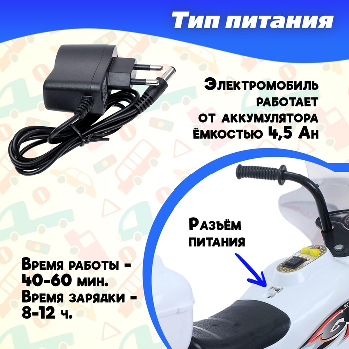 Электромобиль «Спортбайк», цвет белый