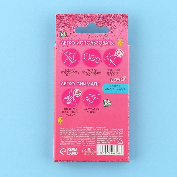 Детские накладные ногти придуманы для самых ярких и стильных девчонок! Клей уже нанесён на ногти.