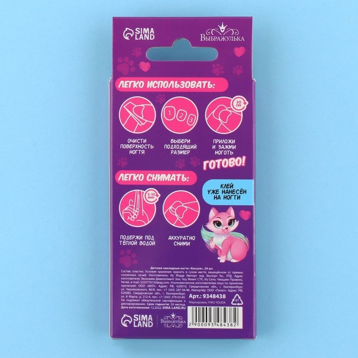 Детские накладные ногти «Кисуля», 24 шт