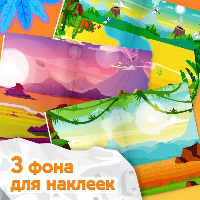 В альбоме представлено 250 стикеров с красочными изображениями доисторических животных — динозавров.