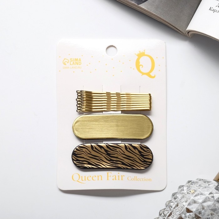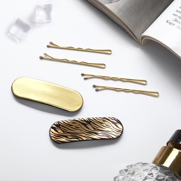 Невидимка для волос "Герти" (набор 10 шт) тигровый, 5 см, золото