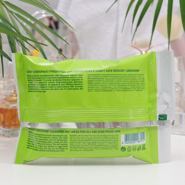 Очищающие салфетки для лица LIBREDERM Серацин для жирной кожи и кожи с акне, 20 шт