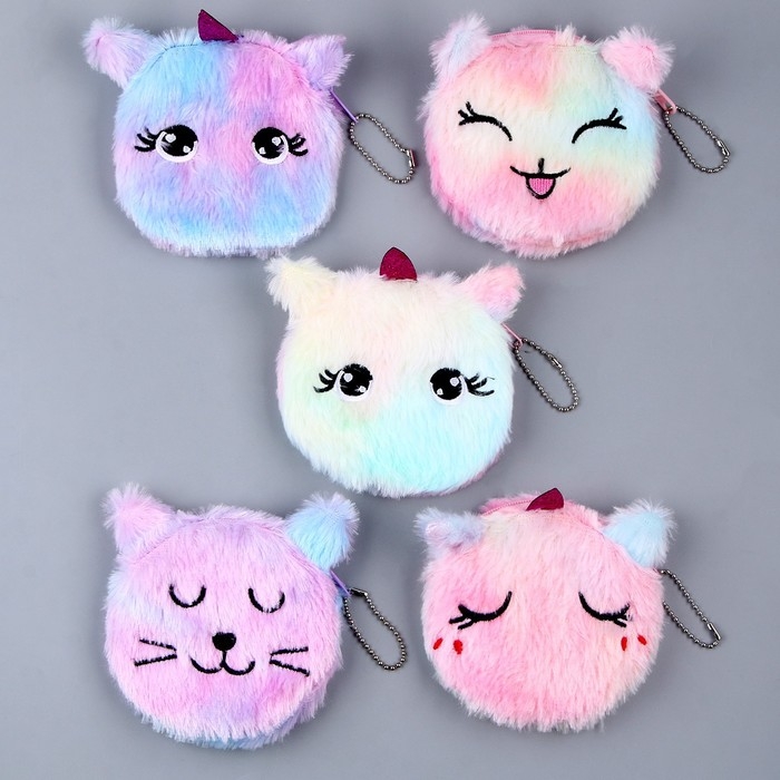 Детский кошелёк из плюша «Котики и единороги», 11х11см, микс