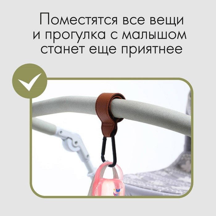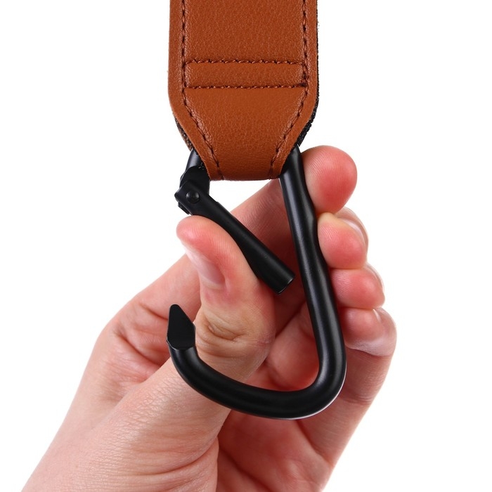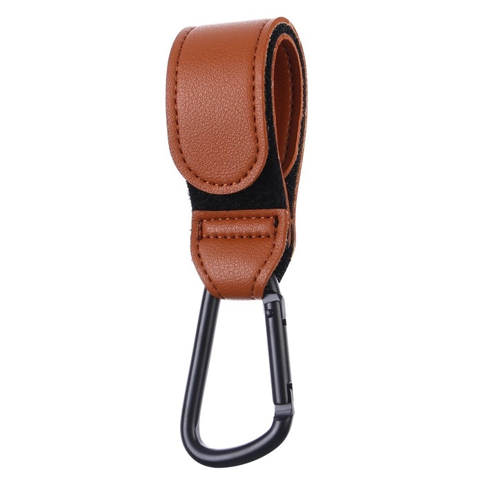 Карабин для сумок на коляску, на липучке, экокожа, цвет коричневый