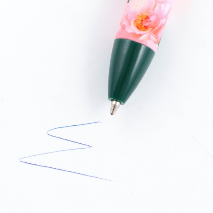 Ручка шариковая синяя паста, пластиковая с цветком "С 8 Марта"
