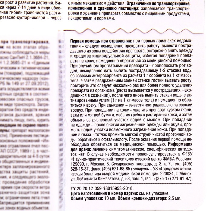 Устойчив к дождю - осадки, выпавшие через час после обработки, не снижают его эффективности.