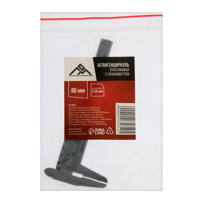 Штангенциркуль ЛОМ, с глубинометром, цена деления 0.1 мм, пластиковый, 80 мм