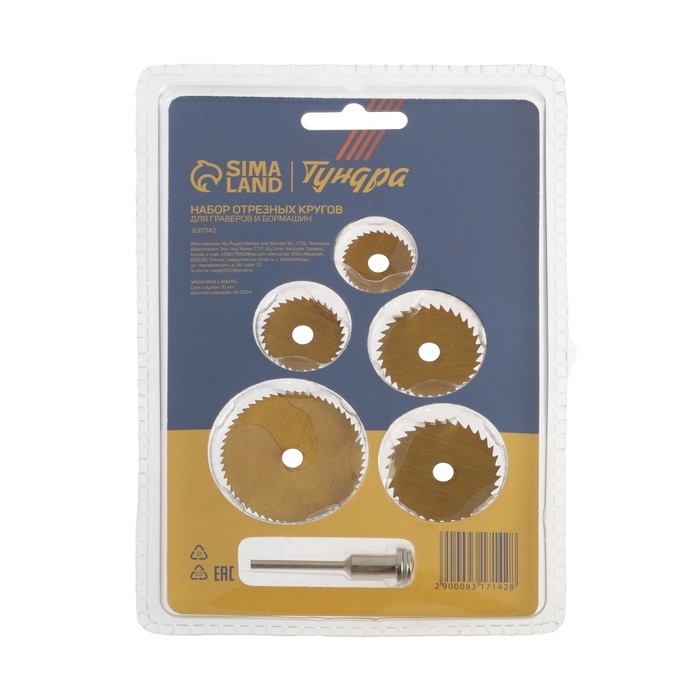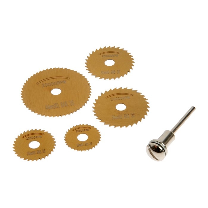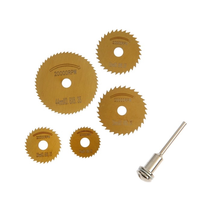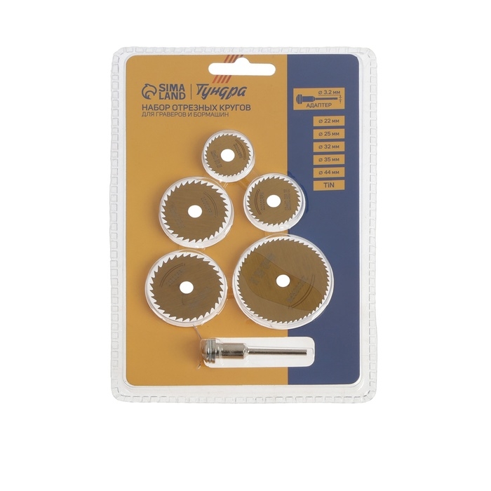 Набор кругов отрезных для граверов и бормашин ТУНДРА, TiN, 5 насадок и адаптер 3.2 мм