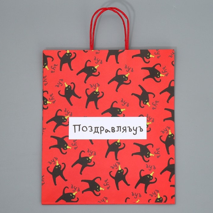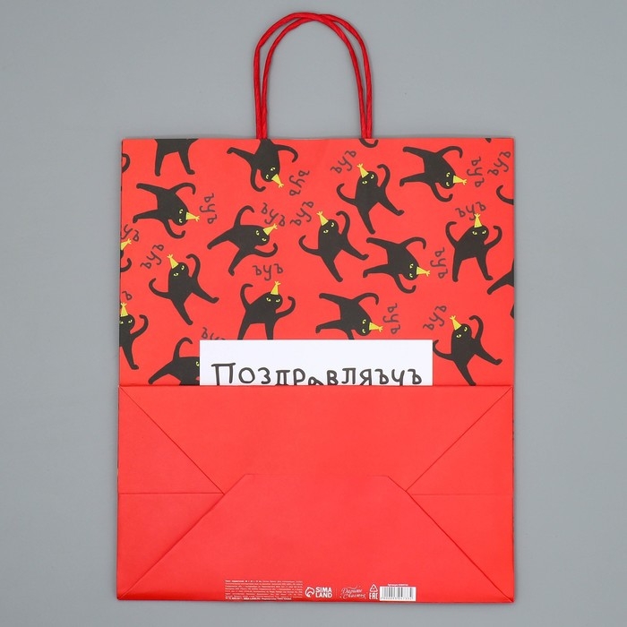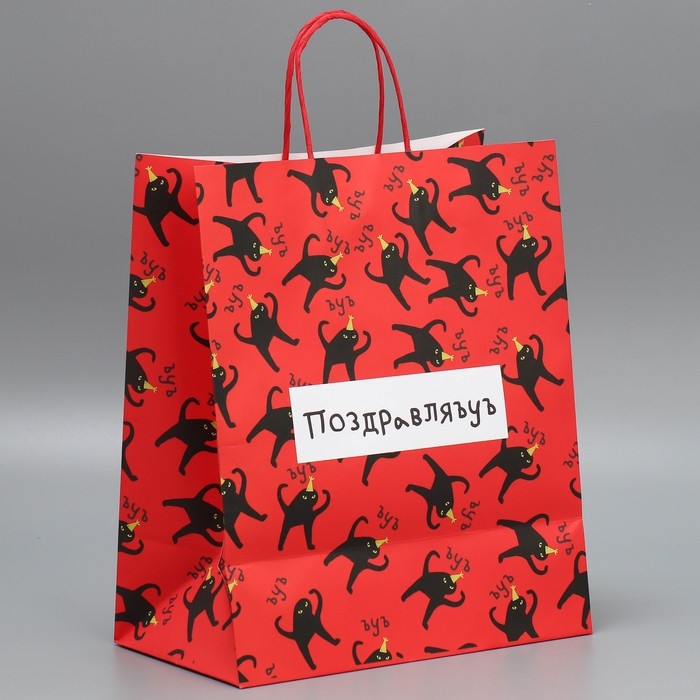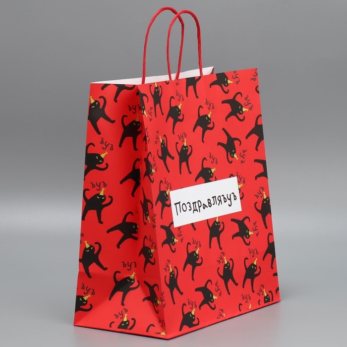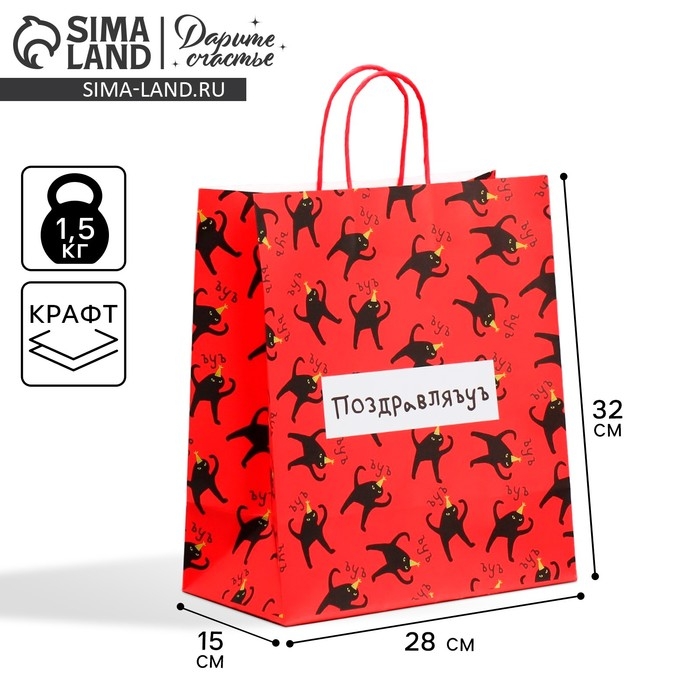 Пакет подарочный крафтовый, упаковка, «Поздравляю», 28 х 32 х 15 см