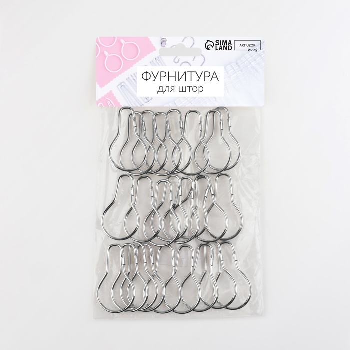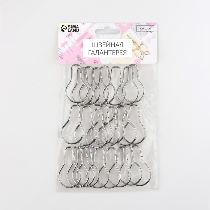 Крючок для штор, 4,8 × 2,8 × 0,2 см, 20 шт, цвет серебряный