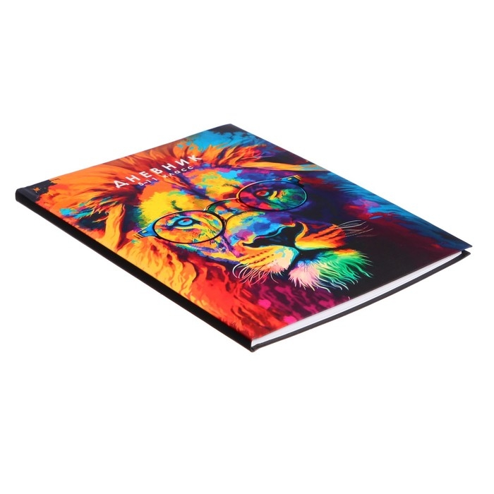 Дневник для 5-11 классов, "Лев. Мозаичный неон", интегральная (гибкая) обложка, матовая ламинация, выборочный лак, 48 листов